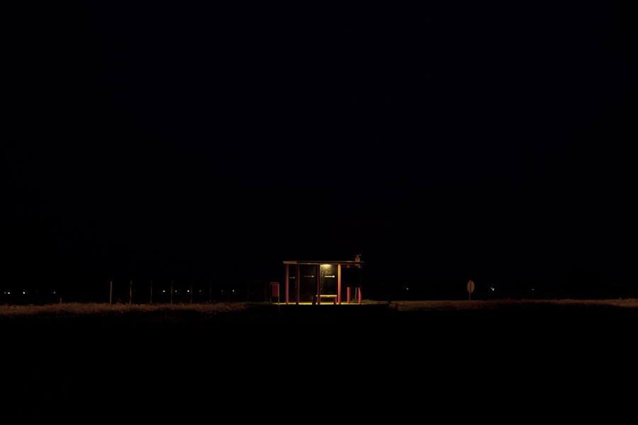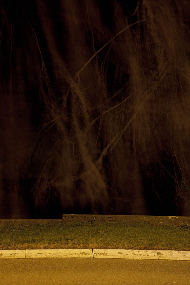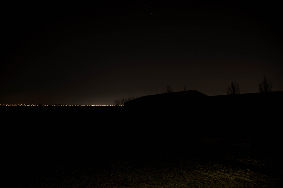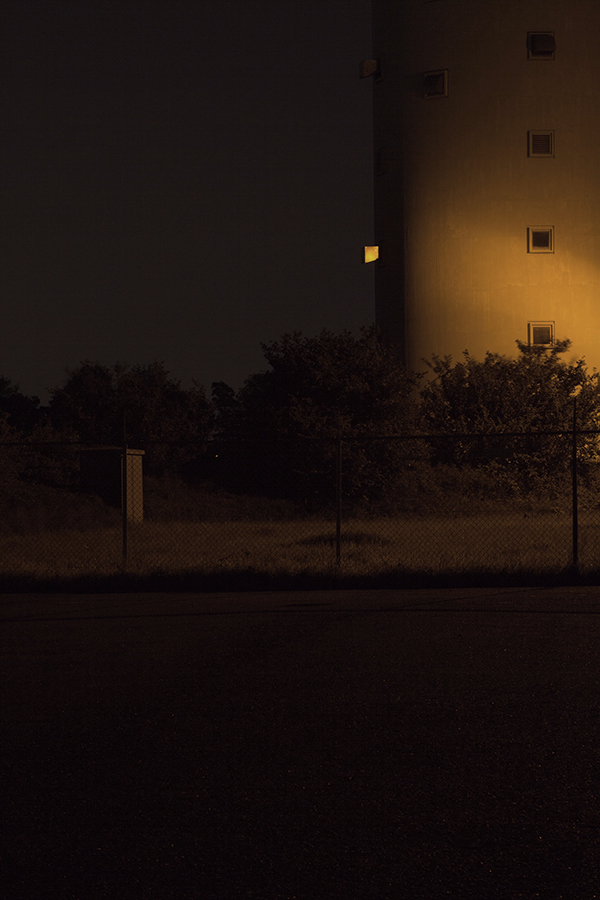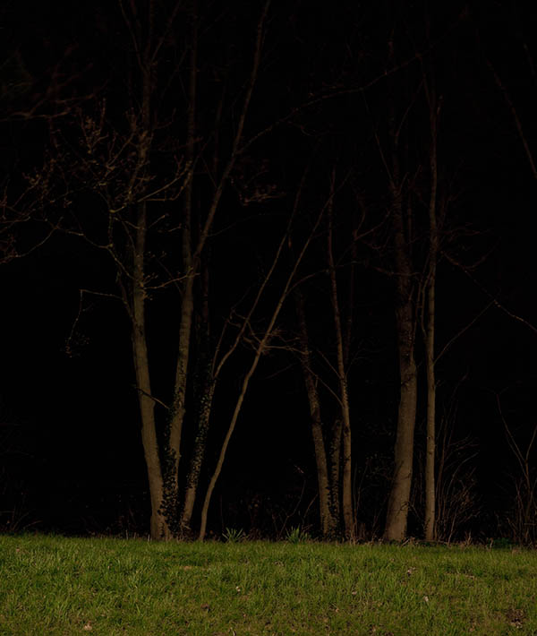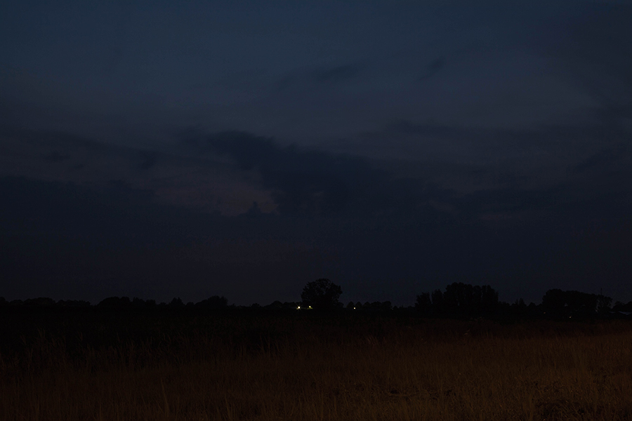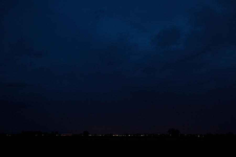 Op een zomernacht in 2013 doorkruist een donkerblauwe Ford Fiesta de Lopikerwaard. Aan het stuur zit Merlijn van der Wardt (IJsselstein, 1977), op de achterbank liggen een statief en een Canon EOS 5D. De wind waait, de bomen ruisen, een hond blaft, een boer wordt wakker, schuift het gordijn opzij en tuurt naar buiten. De Lopikerwaard, een rechthoekig poldergebied in het Groene Hart, wordt ingeklemd tussen de Hollandse IJssel in het noorden en de Lek in het zuiden. De dorpjes heten Zevender, Polsbroek, Uitweg of Cabauw; aan de dijk rondom liggen Oudewater, Montfoort, IJsselstein en Lopik. Vergeleken bij het overgrote deel van de Randstad is het er dunbevolkt en donker. Het donker is wat Merlijn wil vastleggen. Als het even kan op de rustigste nachten van de week, die van zondag op maandag, trekt hij eropuit. Door de inwoners wordt hij met achterdocht tegemoet getreden, en het is natuurlijk ook ongewoon, een fotograaf in de nacht. Merlijn heeft het gevoel dat hij iets illegaals doet. Het tweede dat hem zal bijblijven is het altijd klinkende geluid van de bomen, het riet en het gras in de wind. En wat hem ten slotte opvalt is dat juist de aanwezigheid van kunstlicht het donker accentueert: een lantaarnpaal, de lichtjes langs een snelweg in de verte. ‘Lichten die de nachten intact laten’ - het is een zinsnede uit Vallende ouders van A.F.Th. van der Heijden. Juist door dat kunstlicht is het gevoel dat sommige beelden oproepen unheimisch en lijkt er gevaar om de hoek te schuilen. Merlijn streeft naar eenvoud in zijn fotografie, maar zonder mystiek blijven de foto’s leeg. Sommige onderwerpen, zoals de te fel, of een paar kilometer verderop helemaal niet verlichte sluizen in de Lek, laat hij passeren. Het beeldscherm op zijn camera is klein. Pas ‘s ochtend thuis kan hij het resultaat van zijn inspanningen goed beoordelen: foto’s waarvan hij veel verwacht, blijken tegen te vallen; andere pakken poëtisch of esthetisch verrassend goed uit. Zo, in vijftien voorjaars- en zomernachten, ontstaat langzaamaan een serie, die de mensen uit de streek tijdens de Atelierroute Lopikerwaard op 6 september 2013 voor het eerst zien. Aandachtig zoeken ze naar herkenningspunten. ‘Goh ja,’ zegt iemand. ‘Zo ziet het eruit. Maar zo kijken we er nooit naar.’ Carel Helder, 12 januari 2014
